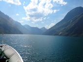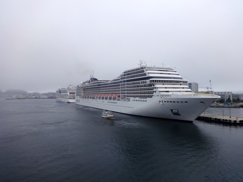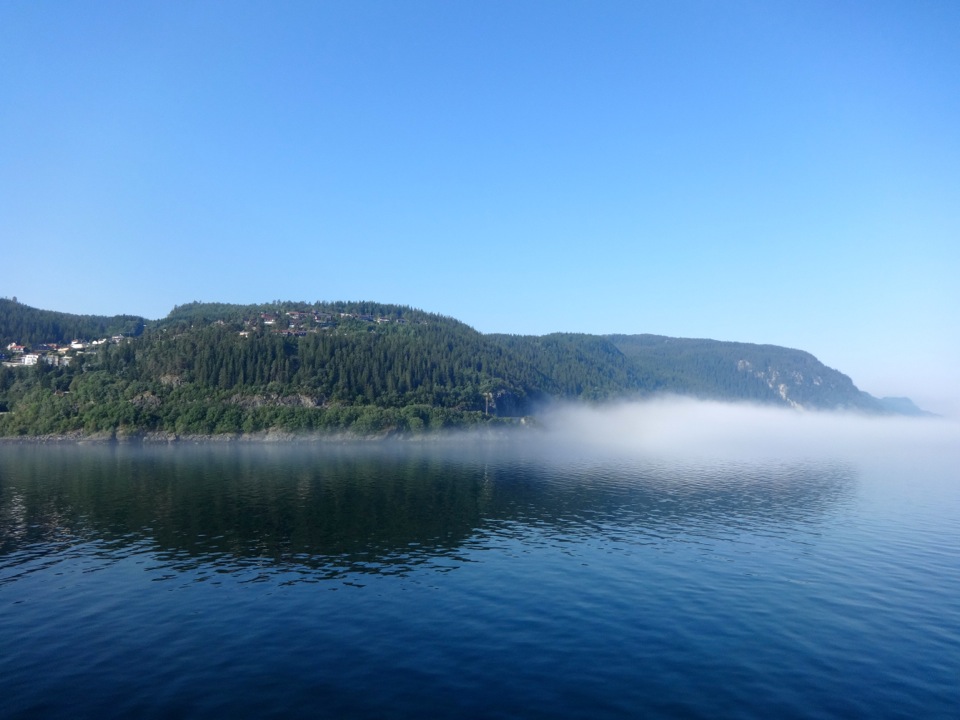 Obwohl die Hurtigruten eigentlich Postschiffe sind, sind sie mittlerweile schon stark auf Touristen ausgelegt. Trotzdem werden an den Häfen noch Güter ein- und ausgeladen, welche die Schiffe weiter transportieren. Wieder in Ålesund angekommen bot sich ein ziemlich cooler Blick auf die Stadt. Über den Berg Aksla "schwappte" der Nebel aus dem Norden und es sah aus wie ein brodelnder Hexenkessel. Die weitere Fahrt nach Trondheim verlief dann durch eben diesen Nebel, wodurch man leider nichts mehr sehen konnte.