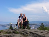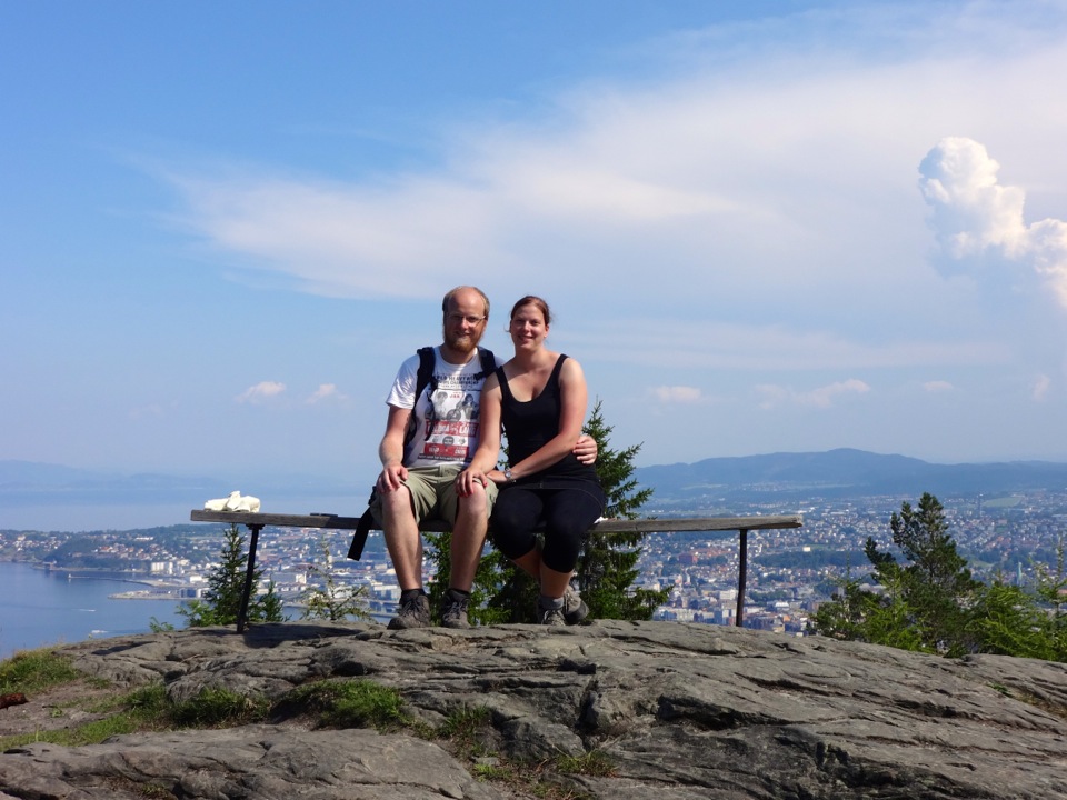 Ausgeruht vom Badetag war es dann soweit. Die Claudia durfte endlich zum Wandern gehen :-). Wir sind in den Bymarka und ich habe eine kleine Tour geplant. Mit dem Bus ging es in die Stadt und dann mit der nördlichsten Straßenbahn der Welt, der Gråkallenbahn, hinauf nach Lian. Von dort aus ging es dann durch den Wald auf den bereits bekannten Geitfjell. Für mich das dritte mal, aber der Gipfel ist immer wieder schön. Weiter ging es auf den Våttakammen und von dort aus zum Theisendammen. Dort haben wir unsere Füße im See etwas erfrischt, um dann nach Hause zu marschieren.